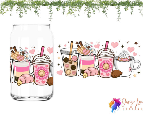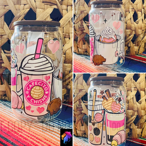 Sip on some Cafecito y Chisme in our clear cup, filled with sweet pan dulce and a warm cafecito while you gossip (in Spanish, of course) with your amigas. Pink hearts add an extra touch of love to this quirky and playful experience. ¡Que divertido!