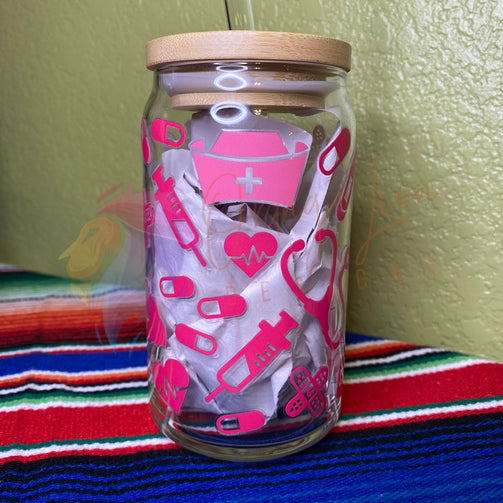 Inject some fun into medical procedures with this clear cup featuring pink quirky medical designs. Keep your spirits high (and your drink visible) during your next checkup!