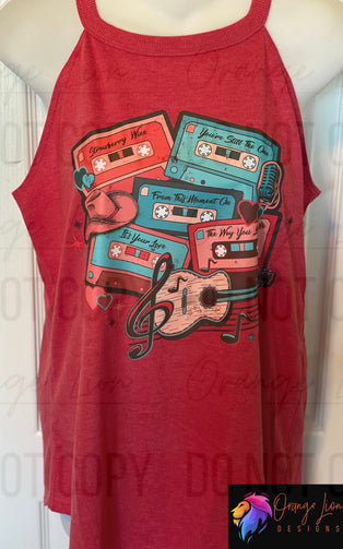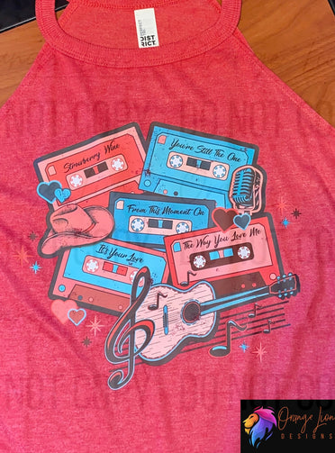 Get ready to swoon with the Valentine Country Love Songs Cassettes rocker tank! This tank top features a country-inspired design complete with guitar and music notes. Perfect for showing off your love for country music while listening to your favorite love songs. Fall in love with this unique and charming piece!